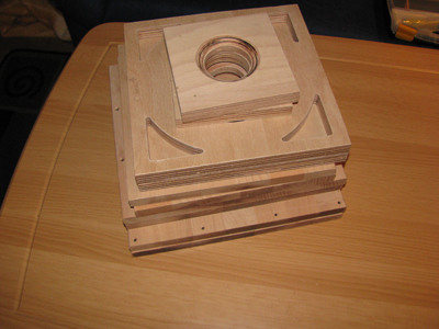 Für meinen Vakuumtisch brauchte ich noch eine Pumpe, doch die sind in der Anschaffung recht teuer. Nach ein bisschen Überlegung musste es ein Eigenbau werden. Als Pumpe musste ein defekter Kärcher Staubsauger herhalten, der eigentliche Motor war nicht defekt. Also den Motor raus und überlegt wie ich den am besten in einen Kasten verbaue und am besten auch gleich noch gegen Lautstärke dämme. Nach und nach habe ich dann die einzelnen Teile in der CAM Software entworfen und gefräst. den Kasten habe ich dann von innen noch gedämmt, was einiges bringt in Bezug auf Lautstärke.