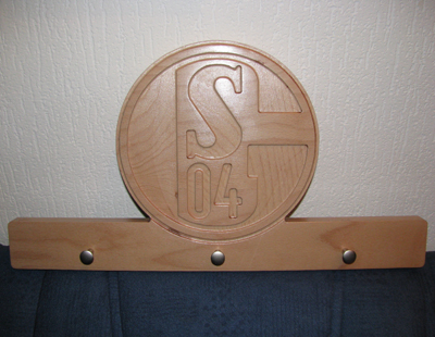Garderobe aus Holz Motiv: Schalke 04 Material: Schichtholz Buche Breite: ca.500mm |